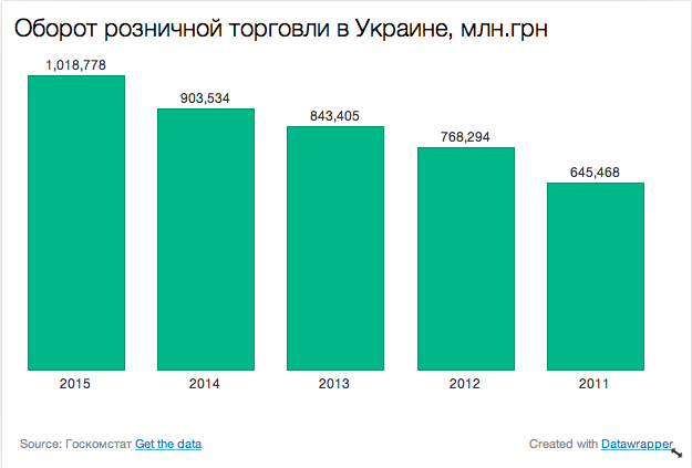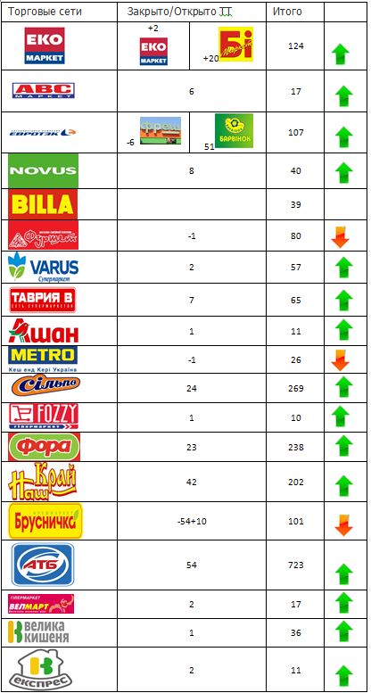 В 2015 году розничный товарооборот в Украине без учета Крыма и территории на Востоке сократился на 21%, но большинство розничных сетей нарастили выручку и продолжили экспансию, хотя темпы развития по сравнению с предыдущими годами снижены. Лидерами по числу открытий новых торговых точек стали «АТБ», «Наш край» и «Сільпо»