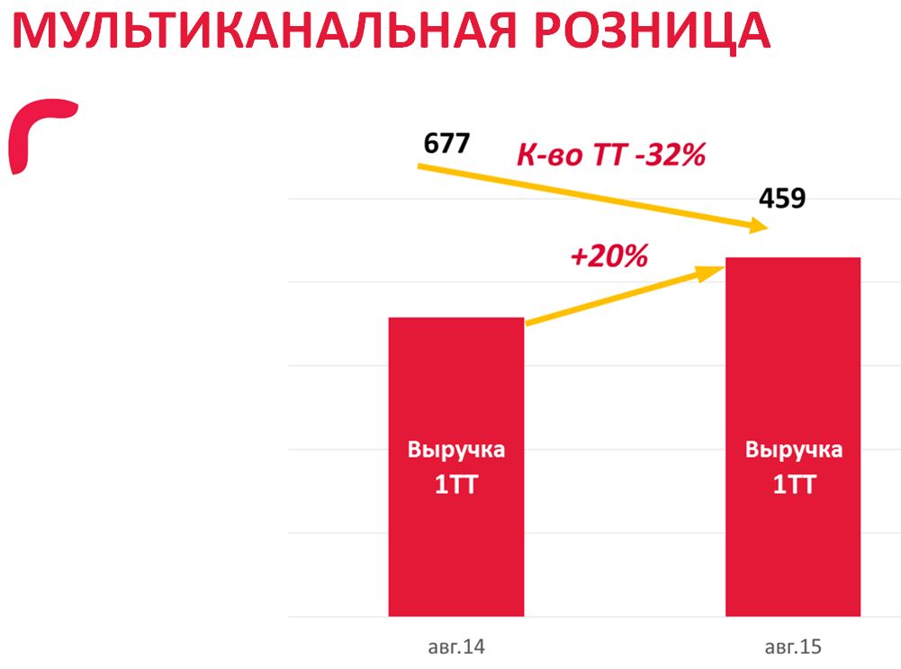 Данная стратегия себя оправдала. За счет оптимизации и переформатирования сети мы наблюдаем динамику роста доли средней торговой точки и, как следствие, прирост в рыночной доле в целом.