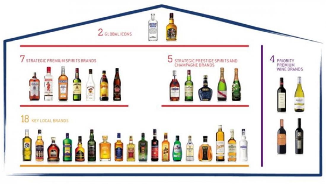 Основанная в 1975 году группа Pernod Ricard выпускает и продает алкогольные напитки под брендами Jameson, Havana Club, Chivas Regal, Martell, Ballantine's, Malibu, Kahlua, Beefeater, Absolut, Olmeca и другие. В 2008 году Pernod Ricard совершила самое крупное приобретение в истории отрасли, поглотив шведскую Vin & Spirit Group (производитель водки Absolut). Pernod Ricard, в частности, владеет Ереванским коньячным заводом (армянский коньяк «Арарат») и грузинской компанией вин и алкогольных напитков GWS (марки «Тамада» и «Старый Тбилиси»).