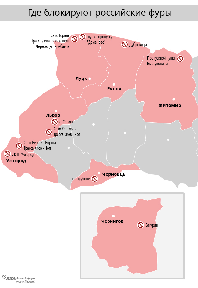 В результате взаимных ограничений Россия фактически лишилась возможности доставлять товары в Европу наземным транспортом. С другой стороны, более 160 украинских фур «застряли» в России.