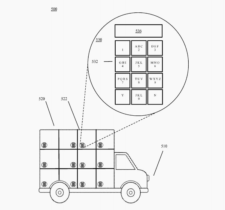 На схеме кузов транспортного средства напоминает постамат на колесах из-за расположенных рядами ячеек, защищенных PIN-кодом: