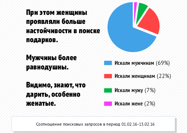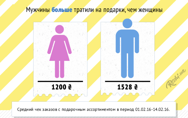 По данным фешен-ритейлера Rechi.ua, в 2016 году украинцы активнее покупали подарки ко Дню Святого Валентина, чем в прошлом году. Мужчины тратили больше чем женщины, но женщины проявляли больше настойчивости в поиске подарков