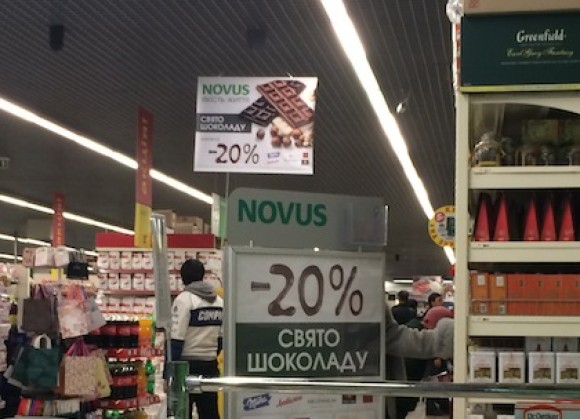 Магазин Novus (ТЦ Dream Town, пр. Оболонский, 1б) отличился наименьшим количеством рекламы. Рекламные плакаты сообщают, в основном, об акционных предложениях.