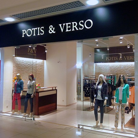 Магазин европейского бренда Potis & Verso предлагает женскую и молодежную коллекции. При пошиве одежды Potis & Verso используются ткани и фурнитура лучших специализированных предприятий Италии, Франции, Испании, Германии и Японии, при этом многие материалы делаются эксклюзивно по заказу компании.