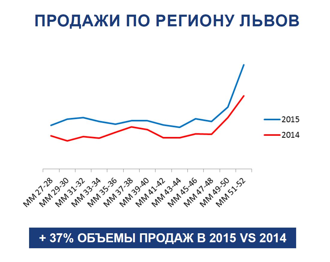 После того как клиенты перестали получать каталоги по почте, они стали реже приходить в гипермаркет: количество визитов сократилось на 5–10%. Однако за счет привлечения новых клиентов продажи все равно выросли на четверть по сравнению с 2014 годом. Продажи во Львовском регионе увеличились на 37%.