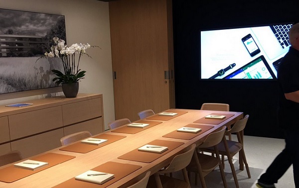 «Мы не хотим, чтобы это выглядело, как магазин. Мы хотели, чтобы посетители почувствовали себя на городской площади — очень открытой и гостеприимной», — сказала Анджела Арендтс, вице-президент Apple по розничным и интернет-магазинам. Основная идея была сделать магазин Apple местом встреч, а не просто местом для покупок. «Мы хотим, чтобы люди говорили «встретимся в Apple», — рассказала журналистам на презентации Анджела Арендтс.