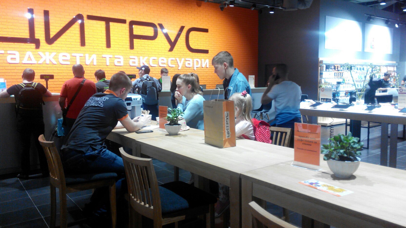 В ICenter.ua, который находится прямо напротив «Цитруса», консультанты откровенно скучали, Lenovo и Moyo, расположенные гораздо дальше, тоже не могли похвастаться большой посещаемостью — в первом посетителей не было, во втором был замечен один. В Moyo отреагировали на ажиотаж и внимание, создаваемые «Цитрусом», и промоутеры раздавали листовки со своим предложением недалеко от магазина.