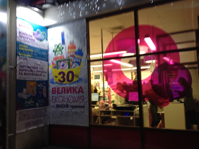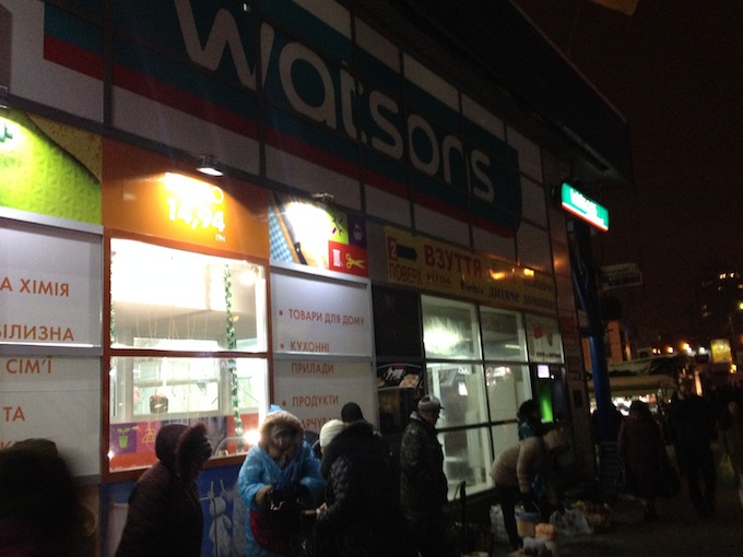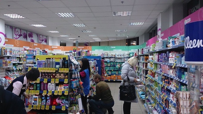 Стоит заметить, что инфраструктура вокруг метро Лукьяновская очень бедная и даже представляет опасность для пешеходов, особенно в зимнее время. Масса выбоин, бордюры, бесконечные торговые лотки, стихийная торговля. Именно в таком месте интересно наблюдать, как работают ритейлеры, справляясь с внешним хаосом. Мы специально выбрали пиковое время, когда пешеходный трафик и количество пассажиров прилегающей станции метро максимальные. Время посещения магазинов — 17:30 — 18:30, пятница.