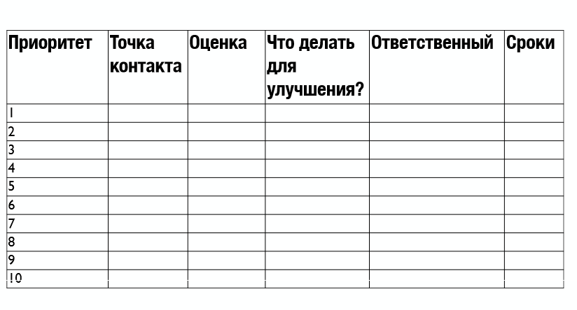 Выделите топ-10 точек и ранжируйте — расставьте по степени важности для вашего бизнеса. Оцените точки контакта.