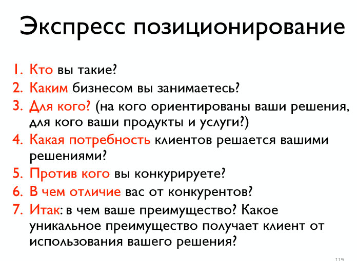 Позиционирование можно сделать самим, но это достаточно сложно. Можно привлечь профессионалов, что будет значительно дороже, или попробовать создать его без большого бюджета. Для этого нужно задать сотрудникам семь вопросов — по одному в течение семи дней.