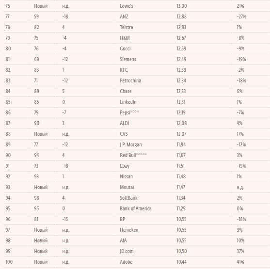 Источник: Financial Times и Millward Brown (включая данные BrandZ, Kantar Retail, LinkedIn and Bloomberg)