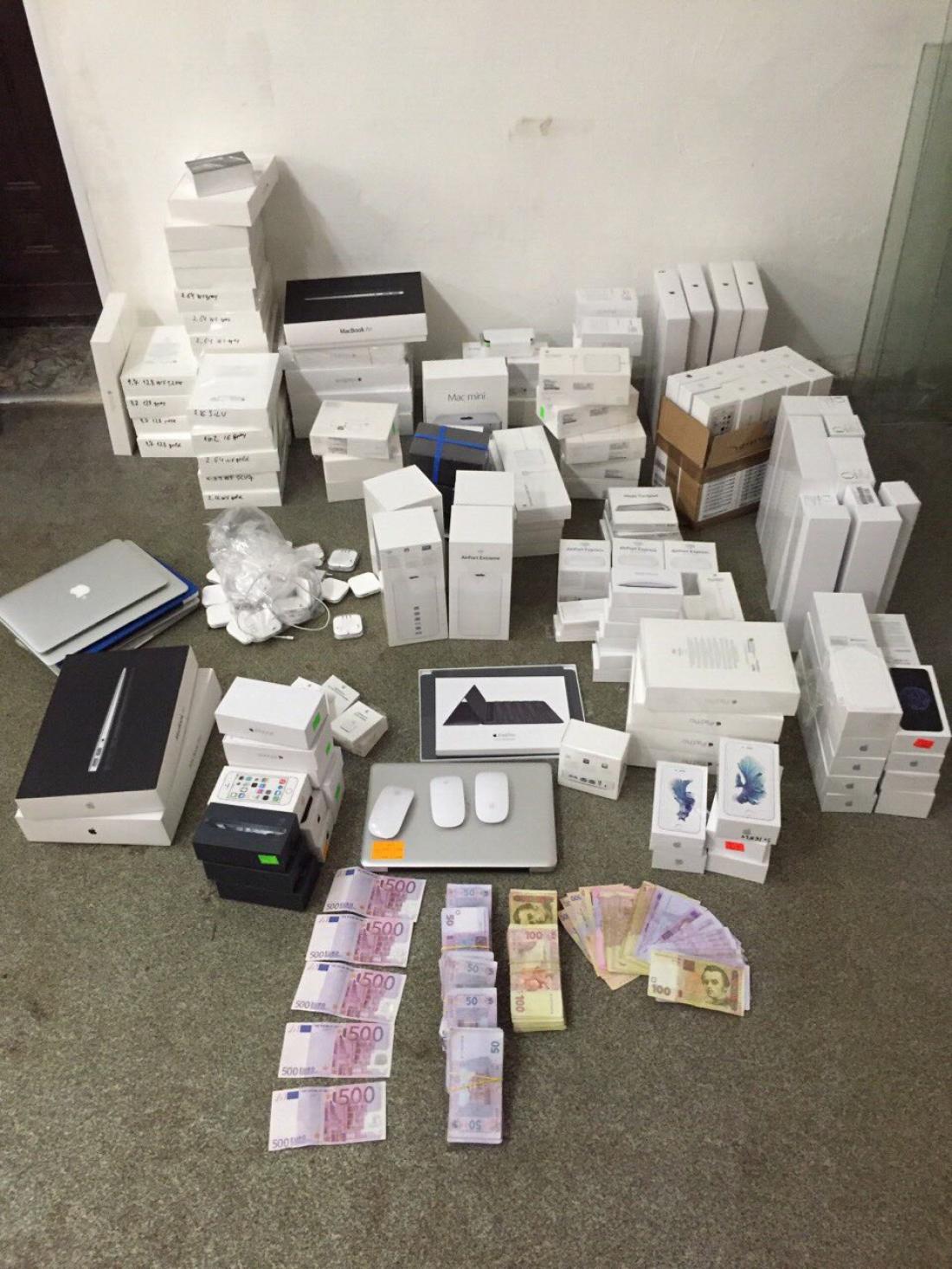 «Приостановлена незаконная деятельность торговой сети по продаже контрафактной продукции Apple. Во время проведения обысков изъято контрафактной продукции и денежных средств на сумму более 3 млн грн», — сообщает пресс-служба.