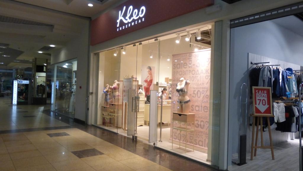 Магазин площадью 80,1 кв. м расположен на первом этаже центральной галереи. Европейский бренд KLEO предлагает белье от французских и итальянских дизайнеров, которое учитывает особенности фигуры восточно-европейских женщин.