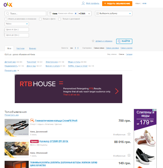 Скрин OLX. Пока писался материал, в куки автора попали слипоны из LeBoutique и сайт RTB House