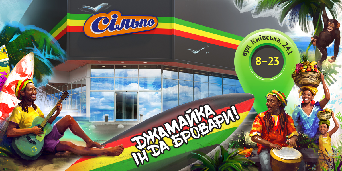 19 августа в г. Бровары, на ул. Киевской, 241 распахнул свои двери новый супермаркет «Сільпо», оформленный в духе самого солнечного и беззаботного государства на земле – Ямайки.