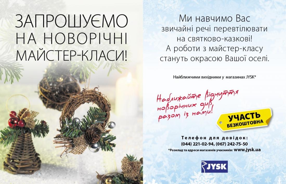 В декабре 2014 года датская сеть магазинов товаров для дома JYSK проведет бесплатные мастер-классы по новогоднему декору во всех 26 магазинах компании в Украине.