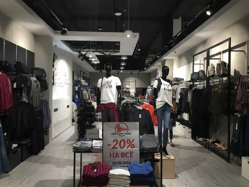 Открытие фирменных магазинов в Украине предусмотрено в глобальном плане развития сети продаж до 2019 года. В мае этого года наша компания подписала договор об эксклюзивном представлении Diverse в Украине. И в августе первый франчайзинговый магазин Diverse был открыт в ТРЦ «Фабрика».