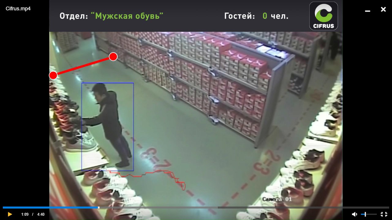 Михаил Селецкий представил разработку компании Cifrus — технологию определения объектов и анализа трафика в точках продажи. Камера отслеживает траекторию движения покупателя и определяет, какие зоны в магазине работают лучше, что интересует покупателя и как привлечь его внимание. Разработчики могут предоставить тепловую карту эффективности прохождения в разных зонах магазина.