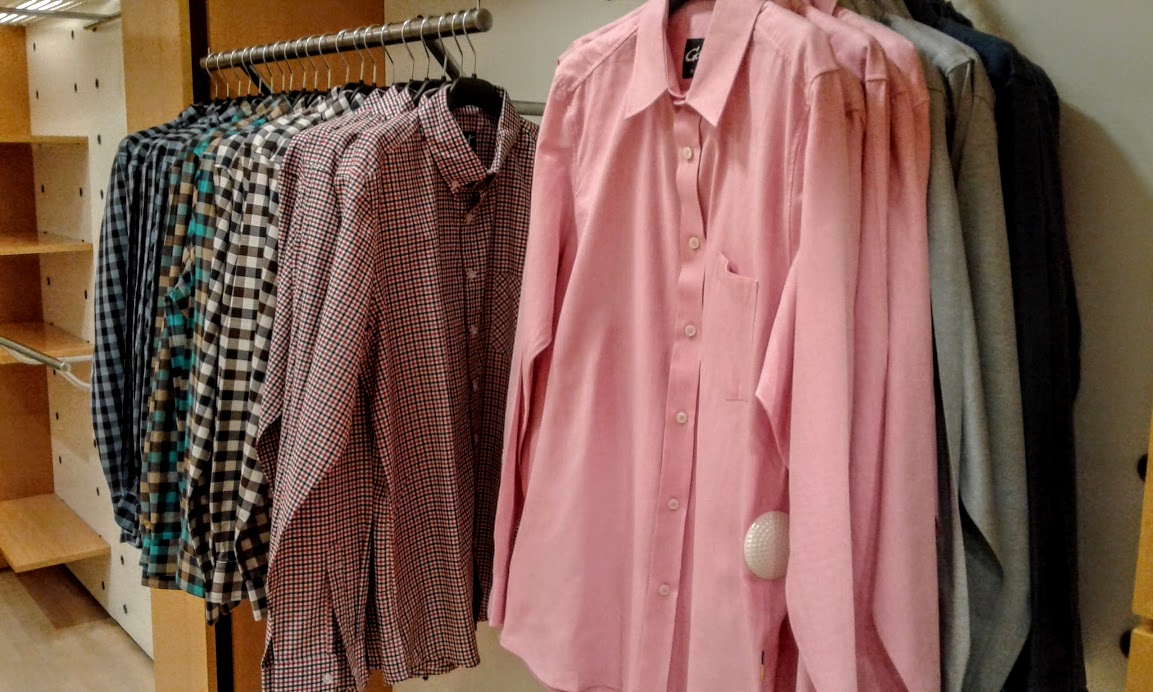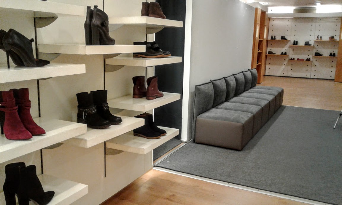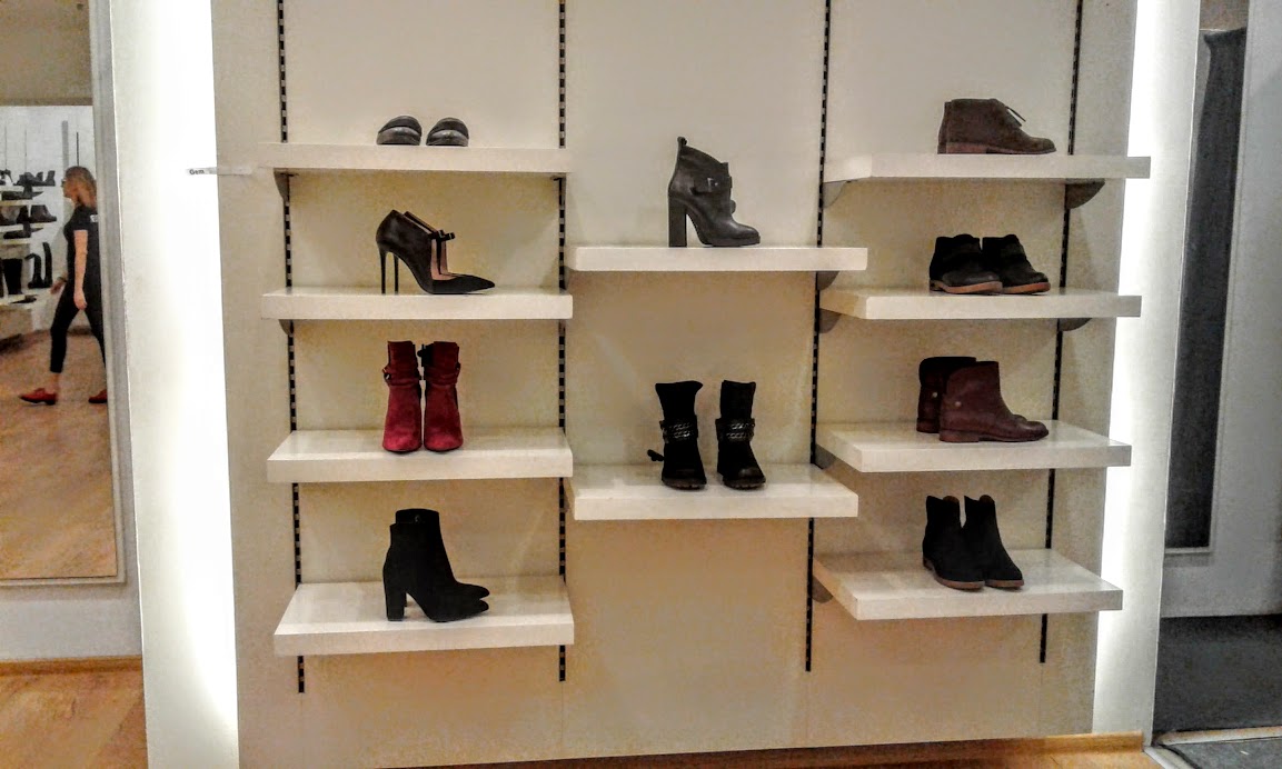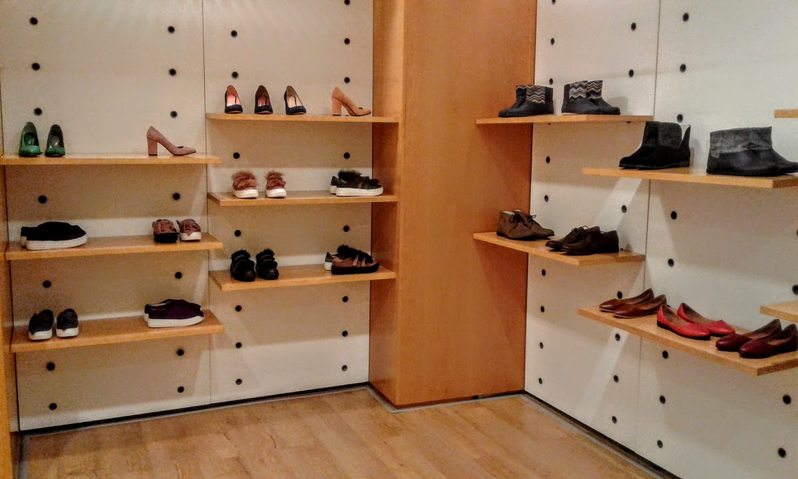 Часть торговой площади занимает мужской ассортимент, часть еще пустует. Не так много производителей выпускают мужские модели. По словам Анны Луковкиной, сейчас они стали больше уделять внимания мужским коллекциям, и вскоре отдел заполнится.
