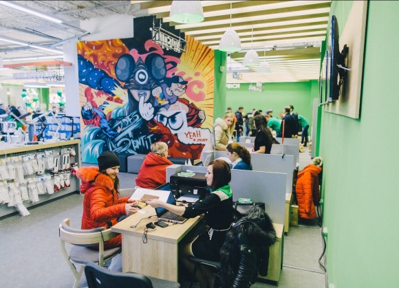 Значительно расширяется ассортимент, теперь у покупателя будет больший выбор инновационных устройств: это смарт-часы, гироборды, фитнес-браслеты, экшен-камеры, а также различные аксессуары и другие современные гаджеты. Меняется оформление магазинов — это прежде всего обновленная концепция дизайна с элементами дерева. Кредитные и сервисные зоны станут еще удобнее и комфортнее, мы дополнили их пуфами и мягкой мебелью.