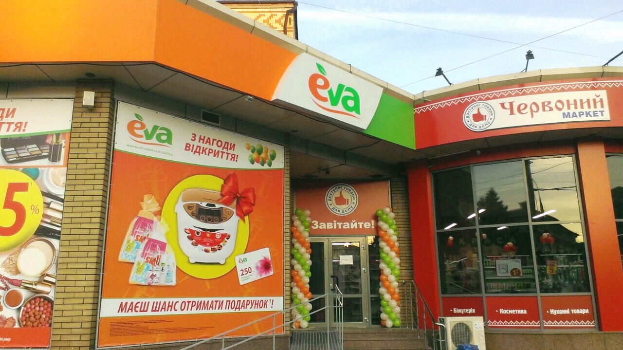 Его торговая площадь составляет 179 кв. м. 4 октября «Линия магазинов EVA» открыла три магазина в городах: Кременчуг, улица 60-летия Октября, 31; Смела, улица Соборная, 93а; Тернополь, ул. Русская, 44.
