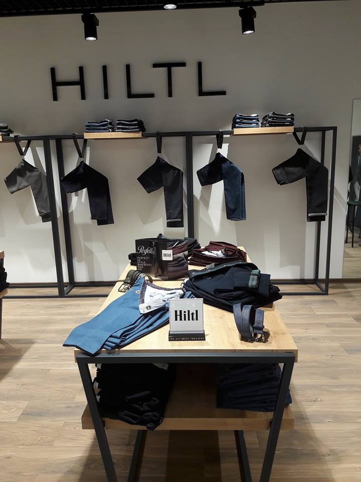 На площади около 40 кв. м в магазине представлено 30 моделей брюк 15 различных цветов и более 150 размеров. Почти все материалы Hiltl закупает исключительно на немецких и итальянских фабриках, а это: мягкий вельвет, тонкая шерсть, высококачественный хлопок или элегантные джинсовые ткани. Брюки марки HILTL изготовлены с использованием системы нано-бионик, отталкивающей грязь, масло, жир и воду.