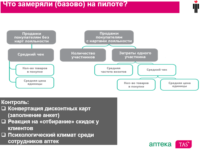 На начальном этапе сравнивали экономические показатели клиентов с картой и без, смотрели средний чек, частоту визитов, разницу, изучали, как быстро конвертируются карты, заполняются анкеты.