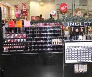 Пресс-служба торгово-развлекательного центра сообщает: «Основной особенностью компании INGLOT является очень большая, яркая палитра матовых и перламутровых оттенков. Еще одна отличительная особенность INGLOT состоит в том, что можно нарисовать четкую линию даже сухими тенями. Косметика не содержит парабенов».