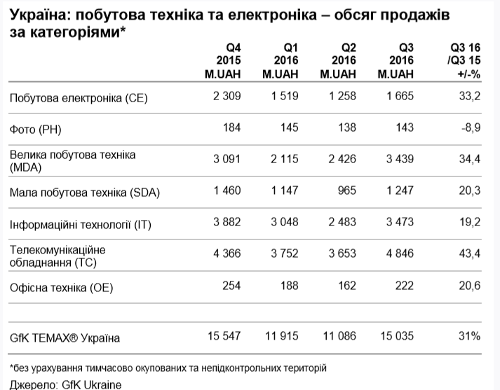 GfK TEMAX Украина: Рынок бытовой электроники в третьем квартале 2016 года в Украине вырос на 31%