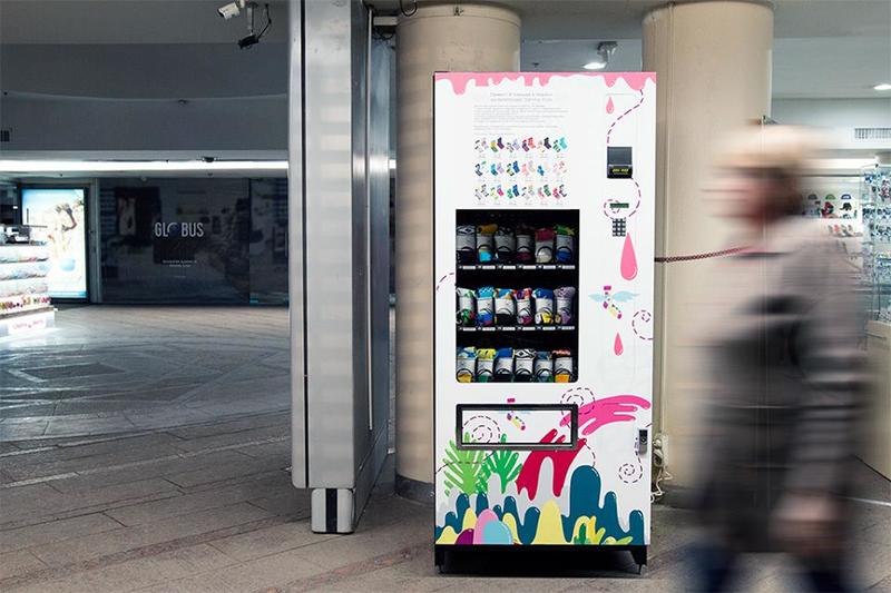 Носкомат разместился на территории первой линии ТЦ «Глобус» у центрального входа. Это яркий автомат, в котором можно купить носки Sammy Icon. До 31 декабря носкомат будет продавать две пары за 100 грн. Об этом пишет bzh.life