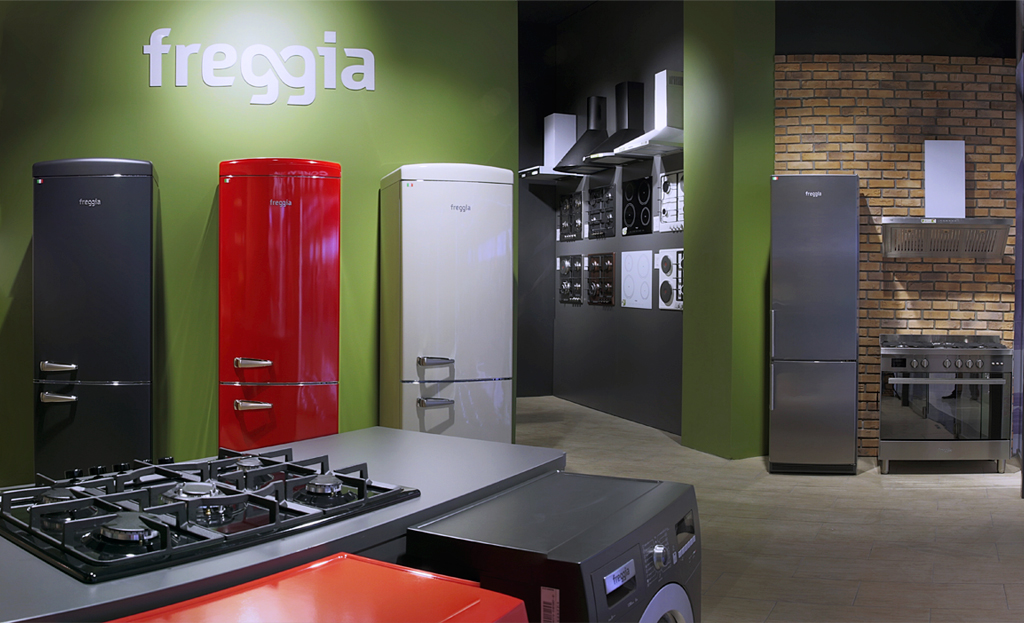 Посетители шоу-рума Freggia смогут сразу для себя отметить удачные варианты, определиться с выбором цвета, в зависимости от стилистических предпочтений выбрать модели серии ретро или минималистический hi-tech. В фирменном салоне бренда продукция представлена в комбинации с кухонной мебелью. Такой формат демонстрационного стенда позволяет наглядно показать бытовую технику в интерьере жилого пространства и подчеркнуть, насколько органично она его дополняет.