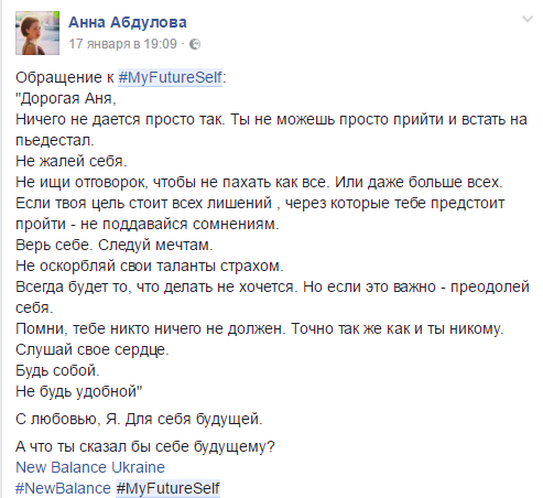 New Balance запустил вдохновляющую маркетинговую кампанию "Что бы вы сказали себе?". На сайте New Balance потребители могут написать спортивные цели для самих себя в будущем и бренд обуви отправит это письмо с целями через год