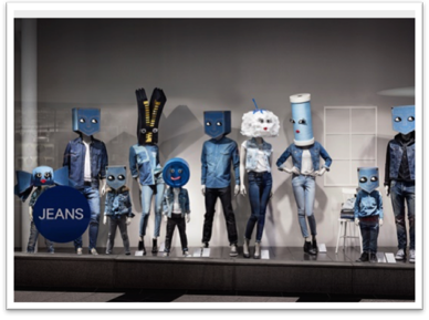 Витрина, вызывающая эмоции. Для ее создания используют героев из фильмов и книг, а также известных личностей. Такая витрина может появиться в период выхода на экраны нашумевших фильмов.