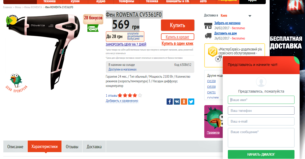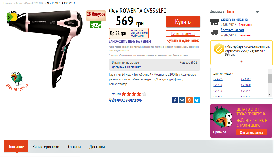24 февраля 2017 года я решаю сделать заказ техники на подарок. В моем распоряжении имеется 600 грн, и я намерена купить технику для дома.