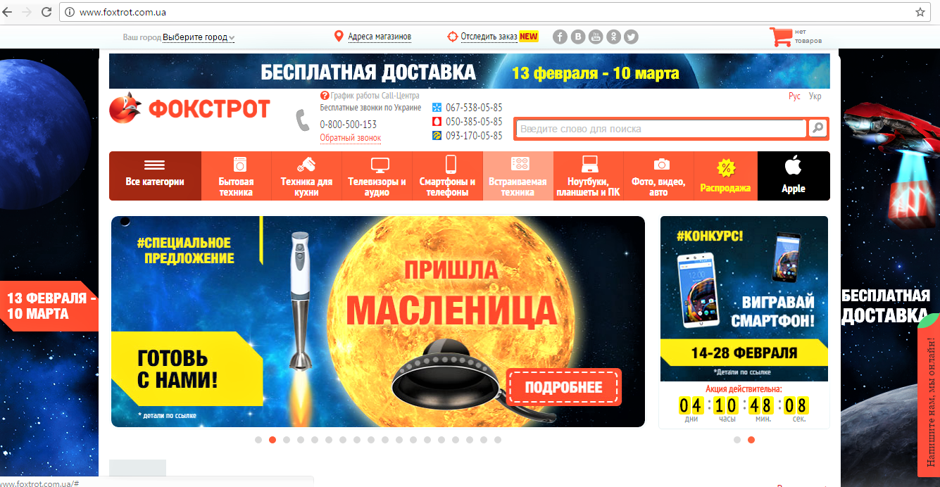 Захожу на сайт «Фокстрота» и сразу вижу большой баннер со спецпредложением на Масленицу.