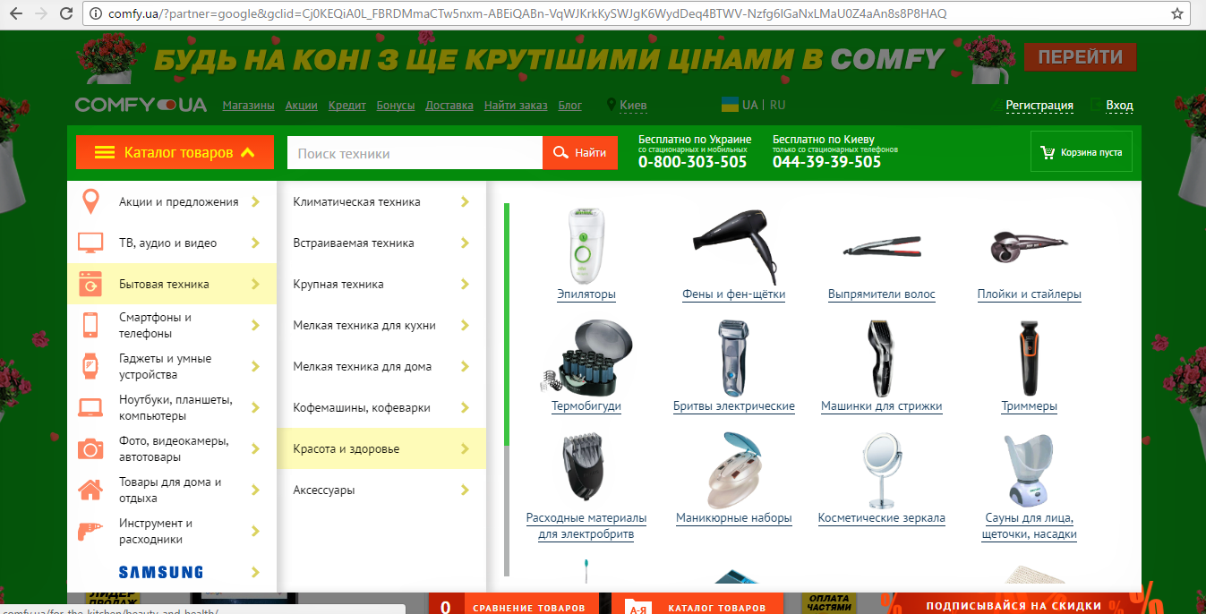 У конкурента Comfy.ua меню интереснее за счет использования иконок товаров.