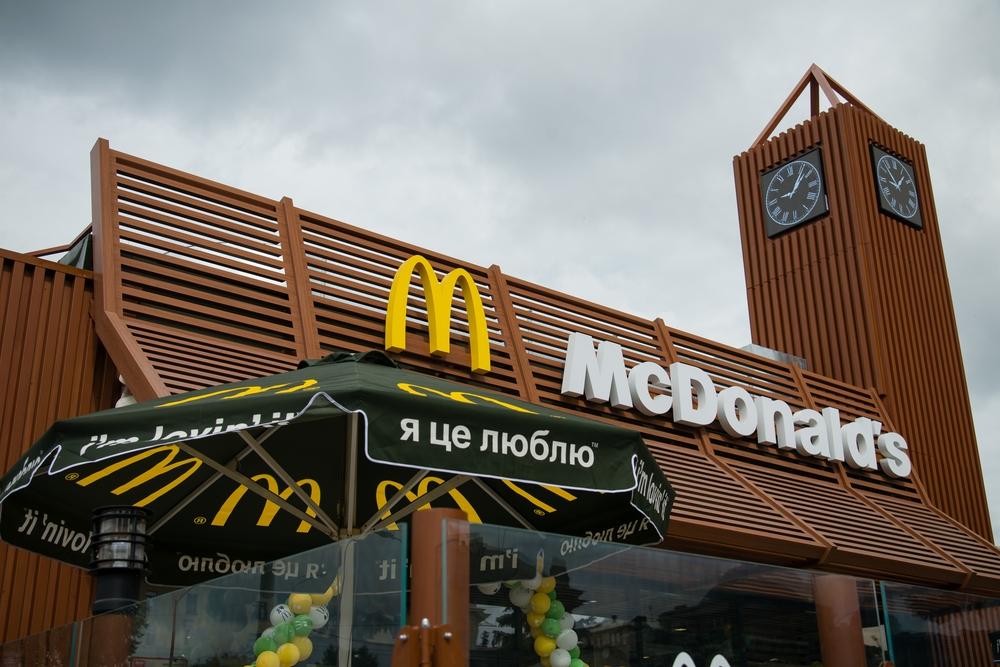 Впервые в Украине в этом ресторане воплощен новый дизайн Alphabet. Еще одной особенностью обновленного МакДональдз® станут часы, расположенные с каждой стороны башни-«карандаша», которые будут информировать посетителей о точном времени.