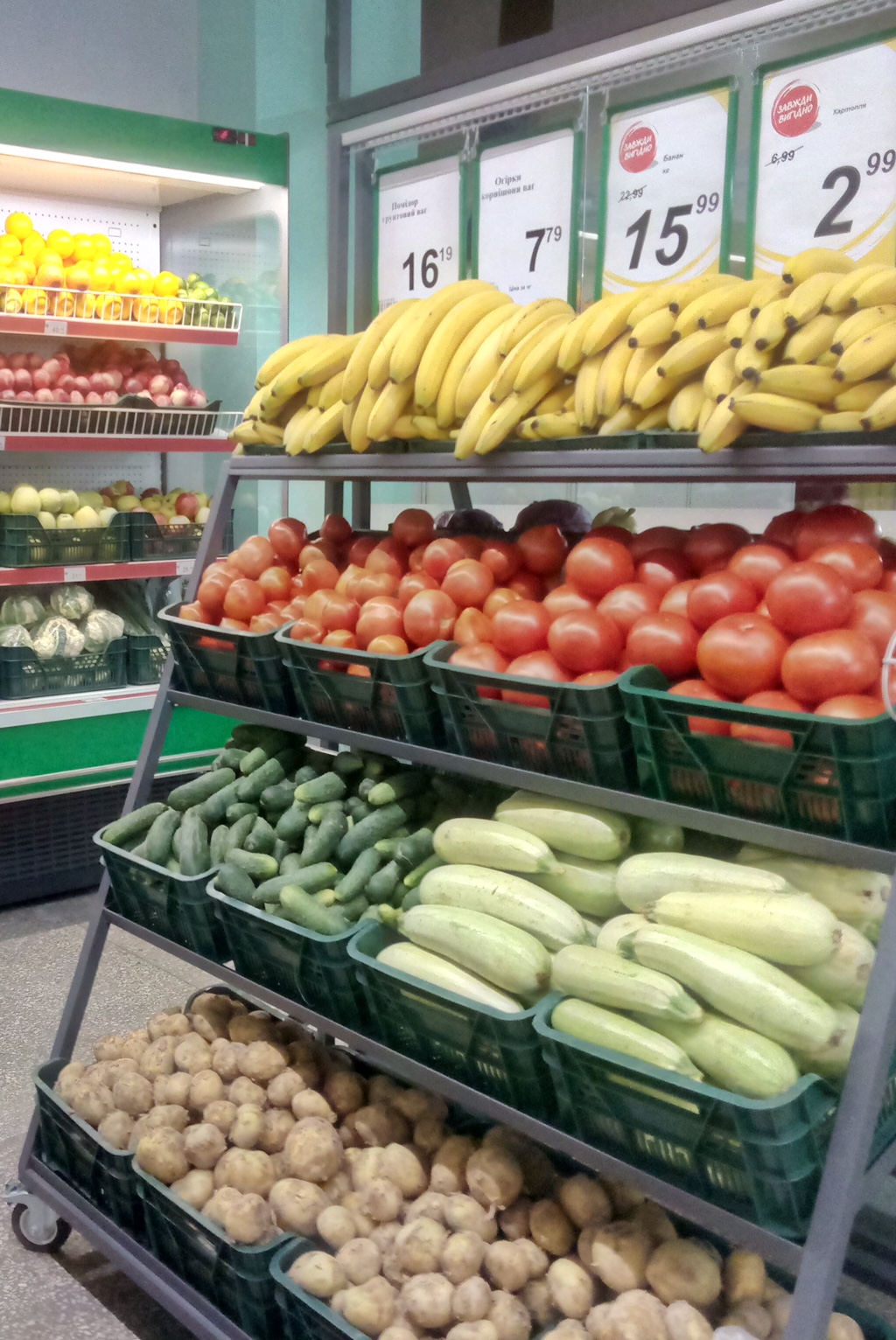 Для покупателей в обновленном супермаркете представлен расширенный ассортимент фреш-товаров, food-to go. Присутствуют большие отделы собственной выпечки и свежего мяса. В супермаркете покупатели могут приобрести свежевыпеченную пиццу, которая готовится на глазах у клиентов, и выпить ароматный кофе.