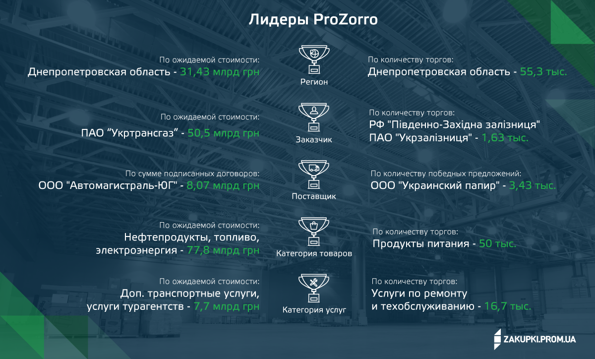 С 1 августа 2016 года сумма договоров, подписанных между государством и бизнесом благодаря системе электронных публичных закупок ProZorro, достигла 172 млрд грн — в 11 раз больше, чем годом ранее. Это стало возможным из-за вступления в силу Закона «О публичных закупках», который обязал органы государственной власти и госпредприятия проводить все сверхпороговые закупки онлайн