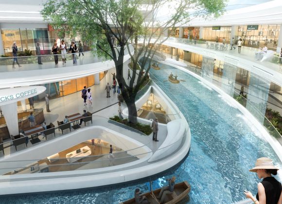 Американская студия amphibianArc разработала дизайн необычного торгового центра Hanhai Dongfeng Town в Китае. Архитекторов вдохновила китайская традиционная чаша сокровищ, которая символизирует удачу и мир. Торговый центр Dongfeng предлагает крытые и открытые пейзажи — от возвышенной площади фонтана и внутреннего канала до огромного вертикального аквариума, расположенного в центре.