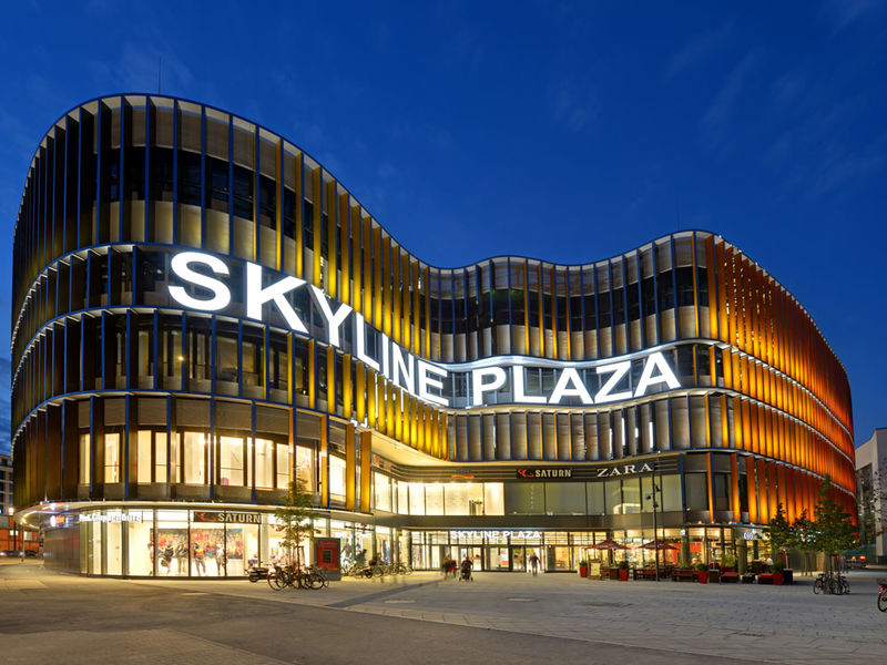 Овальное здание имеет площадь 38 000 кв. м. Особенность дизайна здания — расположенный на его вершине общественный парк с рестораном и игровой площадкой и зеленые зоны (Skyline Garden). По дизайну торговый центр напоминает линию — от этого и название Skyline.