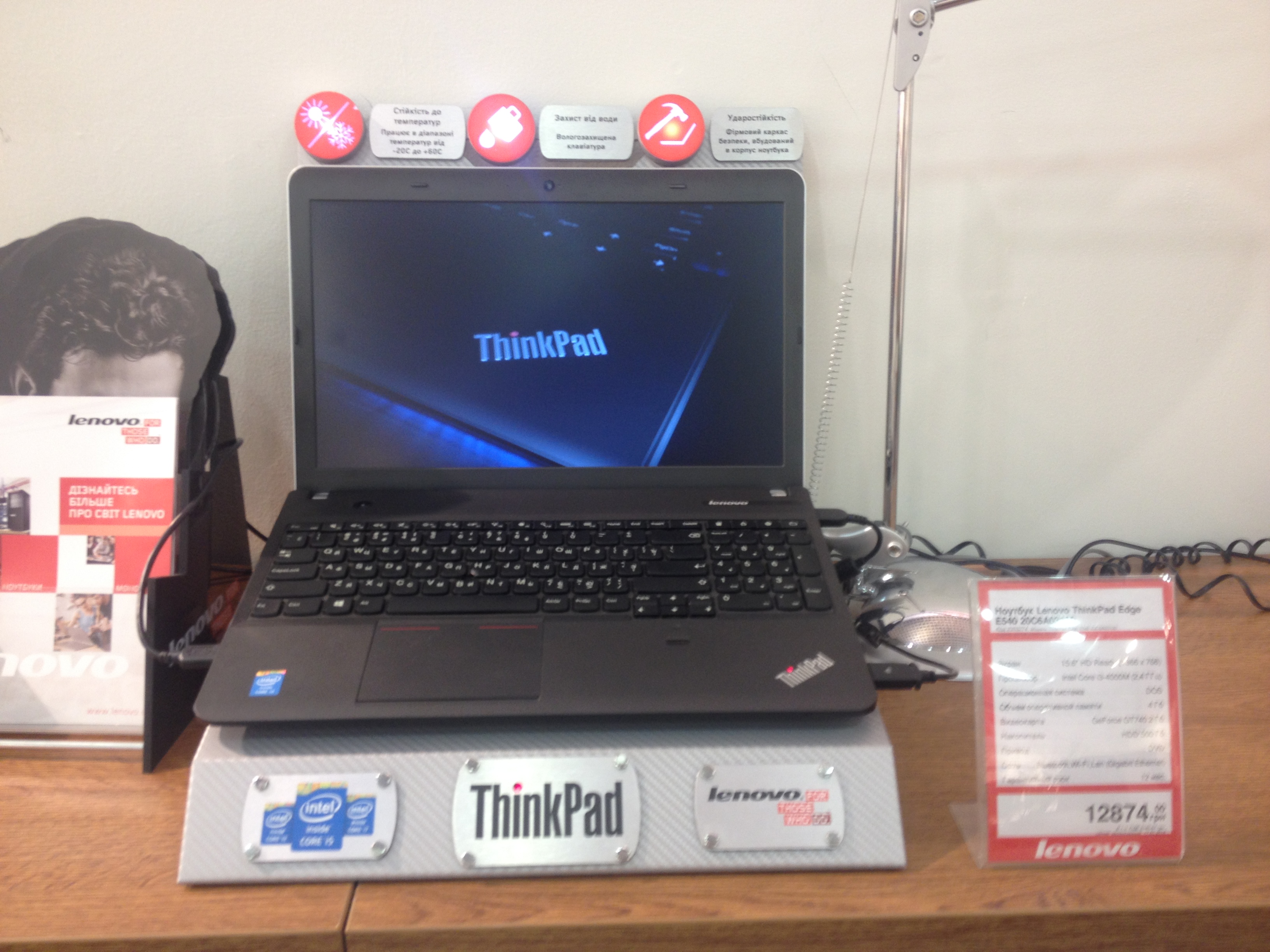 Для ноутбуков серии ThinkPad используется оригинальная подставка с металлической фактурой, которая подчеркивает прочность и надежность именно этой модели и акцентирует внимание на некоторых фишках.