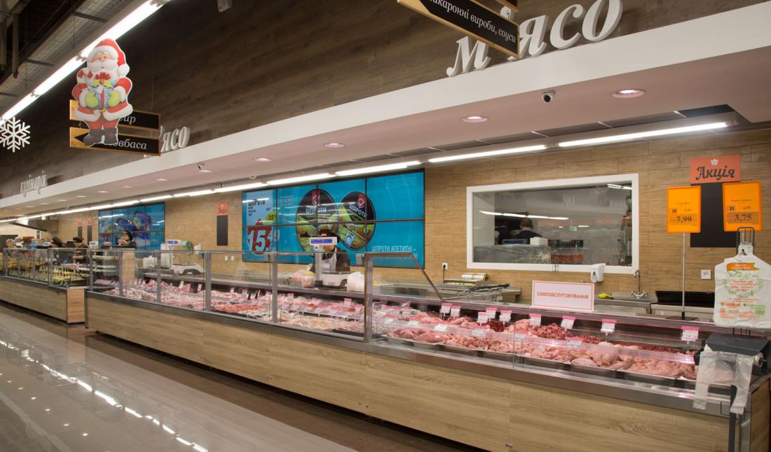 В новом магазине имеются собственные мясной и рыбный цеха, пекарня, отдел кулинарии.