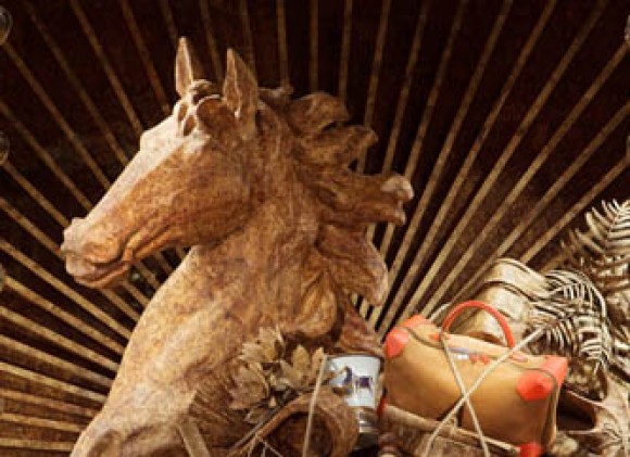 Модный дом Hermes всегда уделял огромное внимание оформлению витрин — работать над ними приглашают не только звезд интерьерного и графического дизайна, но и крупных художников со всего мира. Одна из самых интересных витрин Hermes в 2014 году придумана голландским фотографом Леви ван Велювом для шанхайского магазина марки. В этой работе получила продолжение тема, которая неоднократно поднималась брендом, — интерес к древнекитайскому искусству. В качестве своеобразного оммажа Велюв создал скульптурную композицию из дерева, центральным элементом которой стал Пегас, символ Hermes.