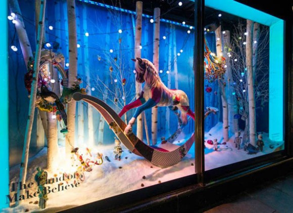 Как следует потрудились над рождественскими витринами и по другую сторону Атлантики. Американский универмаг Saks Fifth Avenue, расположенный в самом сердце Манхэттена, украсил свои окна сюжетами из сказок про Спящую красавицу, Рапунцель, Золушку и других героинь братьев Гримм. Сногсшибательные световые проекции превратили знакомые сюжеты в фантастические живые картины. С помощью 70 тысяч лампочек, 3,5 километров гирлянды и шести 3D-проекторов дизайнерам Saks Fifth Avenue удалось создать в витринах иллюзию праздничного фейерверка.