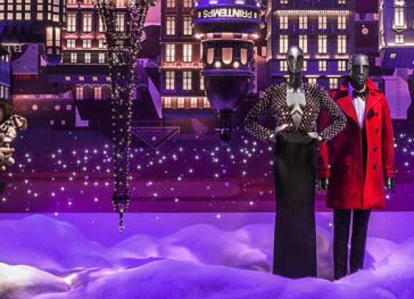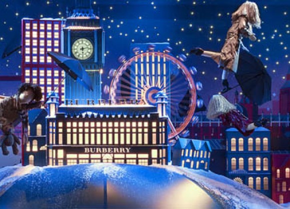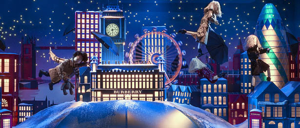Еще одна марка, знаменитая своими необычными и всегда стильными витринами, — английский модный дом Burberry. Темой оформления их главного французского магазина в зимнем сезоне стало путешествие из Лондона в Париж. Герой этой истории, облаченный в традиционный тренчкот Burberry, изображен не только на фоне знаковых пейзажей вроде Эйфелевой башни и Биг Бена, но и в арктических пещерах, на океанских волнах и даже в облаках, куда он загадочным образом попадает, преодолевая небольшое, казалось бы, расстояние между английской и французской столицами.