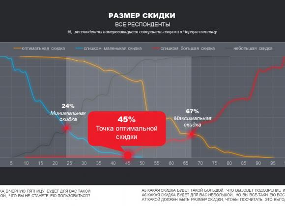 Безусловно, потребители имеют разные ожидания к разным категориям товаров. Так, для покупателей одежды и обуви стандартно приемлемой скидкой будет 45%. Покупатели техники не рассчитывают на такие бонусы и согласны на дисконт в 33%.