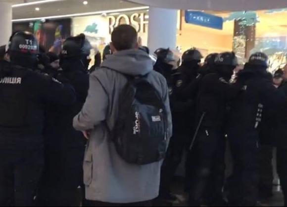 Полиция приехала к ТРЦ около 12:30, сообщает The Babel. Несколько десятков полицейских окружили представителей организации и попытались вывести их из здания. В результате столкновений правоохранители задержали заместителя председателя организации ВОО "Сокол" Ивана Косенко. "Космонавты начали потасовку, задержав активиста, а также толкнули женщину, которая упала от этого на пол, потому что вступилась за парня. Правоохранительные органы намеренно делают провокации, применяя физическую силу против тех, кто поддерживает активистов", – прокомментировал появление полицейских Назаренко.