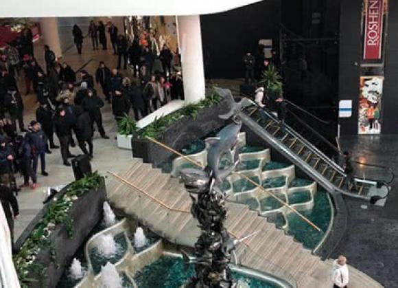 Обновление // В 18:00 ТРЦ Ocean Plaza опубликовал заявление на странице в Facebook. "Торговый центр Ocean Plaza подвергается неправомерным нападениям со стороны представителей радикальной организации. Сегодня во время акции в ТРЦ были захвачены рабочие места администраторов информационной стойки, что препятствовало нормальному функционированию ТРЦ. Служба безопасности ТРЦ совместно с вызванными сотрудниками полиции пытается удержать ситуацию без вступления в конфликт. Несмотря на то, что во время акции участники заявляли, что не препятствуют деятельности арендаторов, не несут угрозы здоровью и жизни посетителей и сотрудников ТРЦ, в 18:00 в помещении ТРЦ снова подожгли дымовые шашки, сейчас проводится эвакуация. О дальнейшем режиме работы ТРЦ сегодня будет сообщено позже", – сказано в сообщении.//