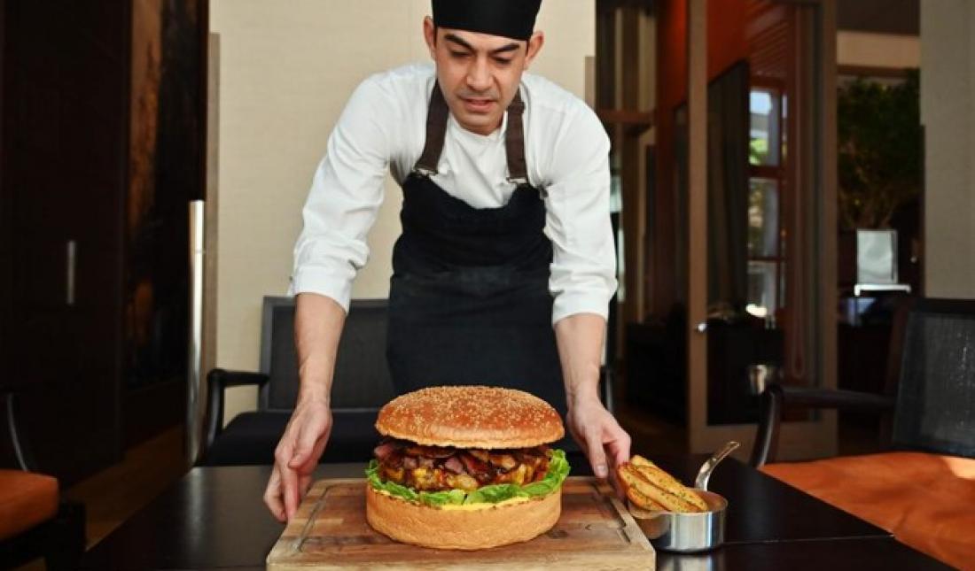 Первого мая в Японии отмечают коронацию нового императора. В честь этого ресторан отеля Grand Hyatt Tokyo решил добавить в меню гигантский бургер стоимостью $900. Диаметр бургера – 25,4 см, а вес – 3 кг. В меню он будет с 1 мая по 30 июня.